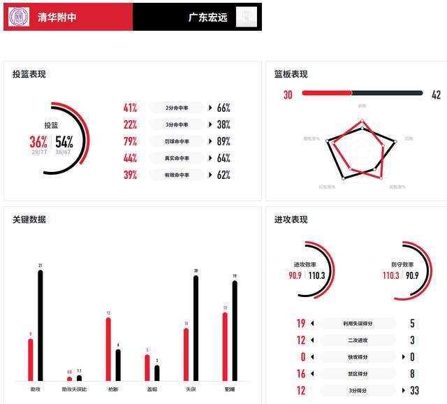 从数据来看,广东宏远青年队打得十分出色,命中率高达53.7%,远超对手的36.4%,三分球29投11中,对手只有18投4中。护筐层面更是遥遥领先,篮板球42-30,赢得还是很轻松的。不过,18次失误有点多,清华附中男篮只有10次失误。